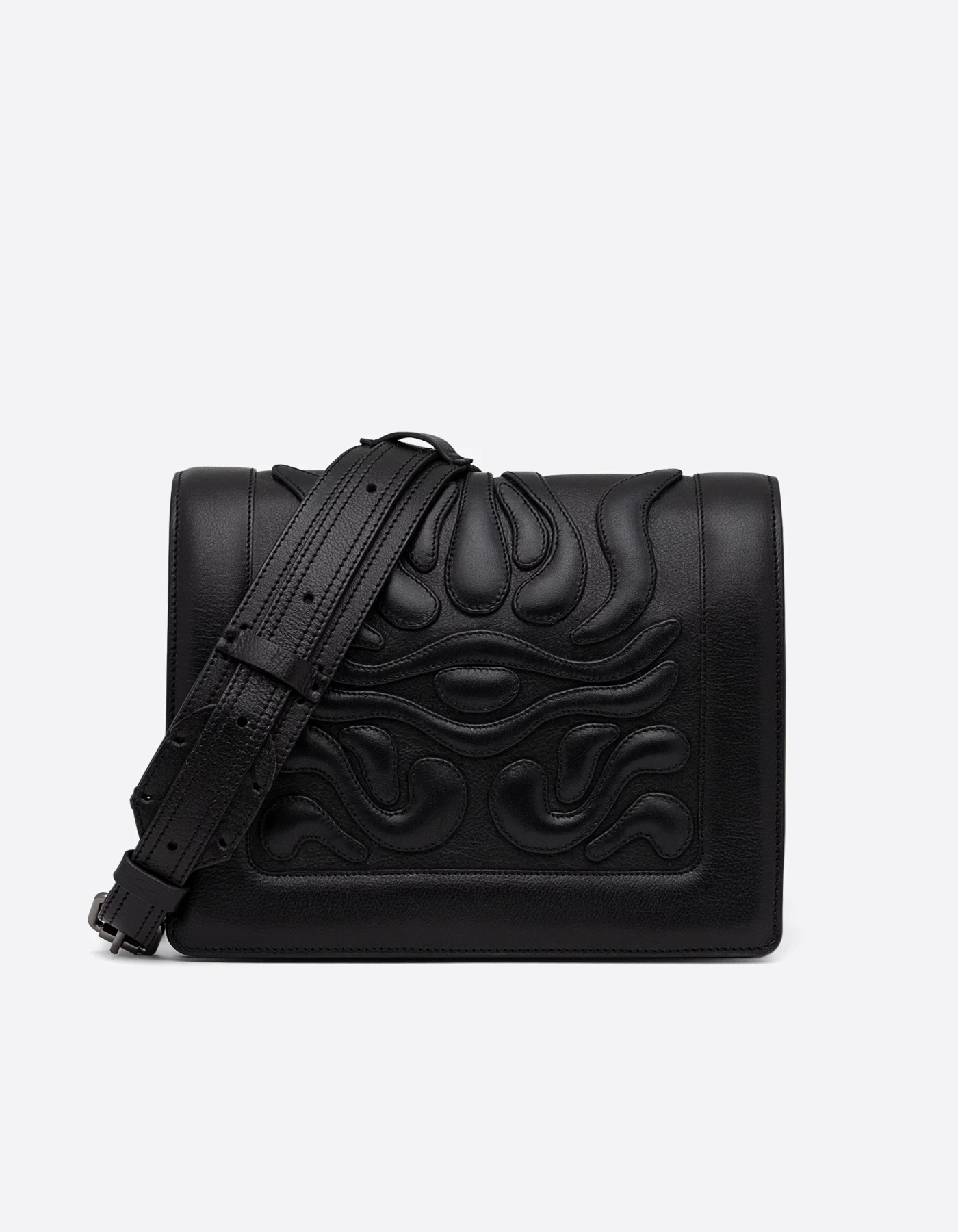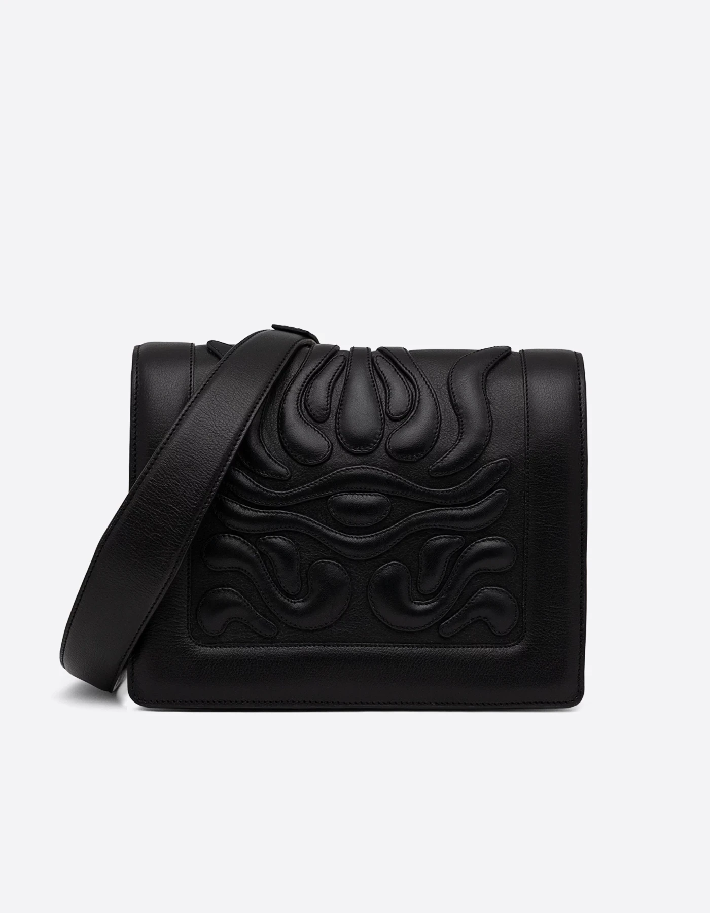 Priekyje – paminkštintų formų dekoras, kuris vientisai pereina per atvartą ir kuria švelniai reljefišką, tvarkingą mozaiką. Įsižiūrėjus atsiveria subtilus akies motyvas.